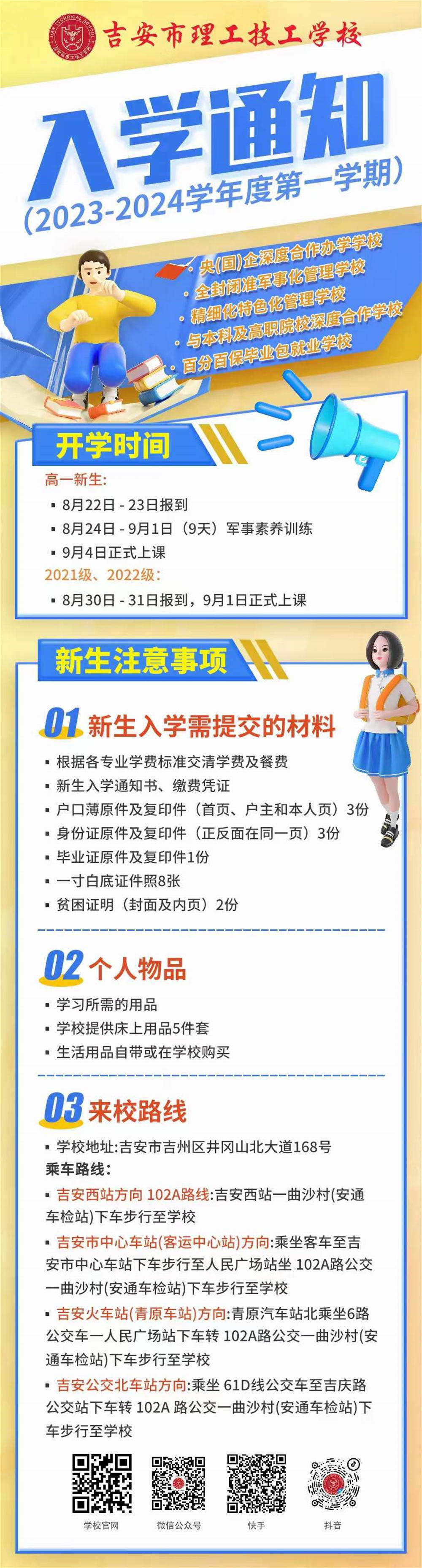 【開(kāi)學(xué)通知】吉安市理工技工學(xué)校2025級(jí)新生入