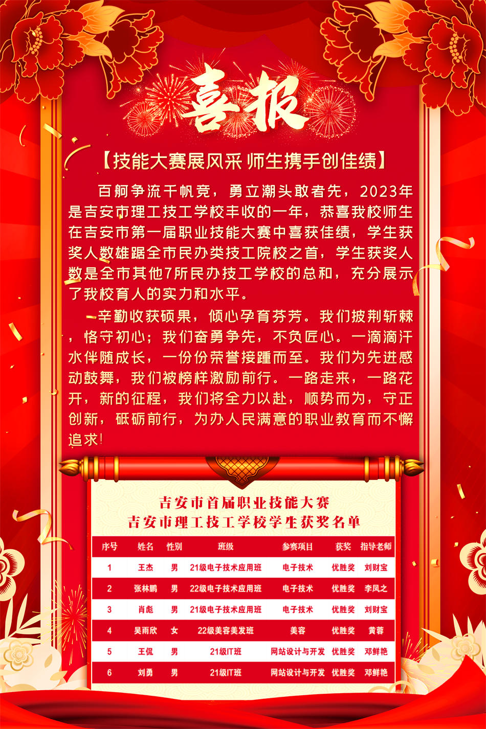 來源:吉安市理工技工學(xué)校???????? 發(fā)布時間:2023-12-25 ????????瀏覽數(shù):