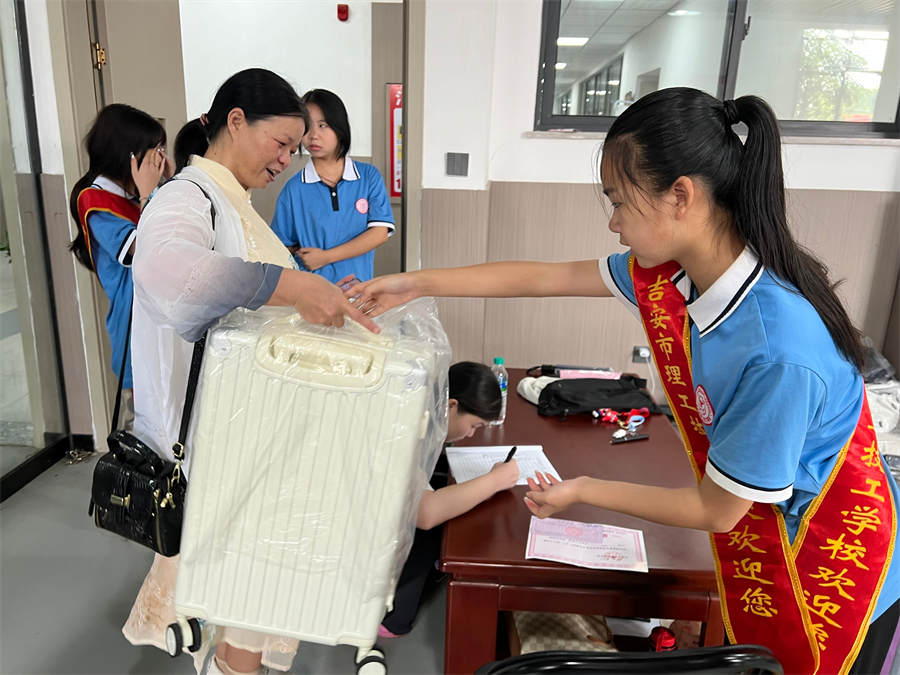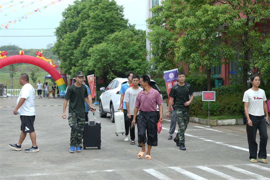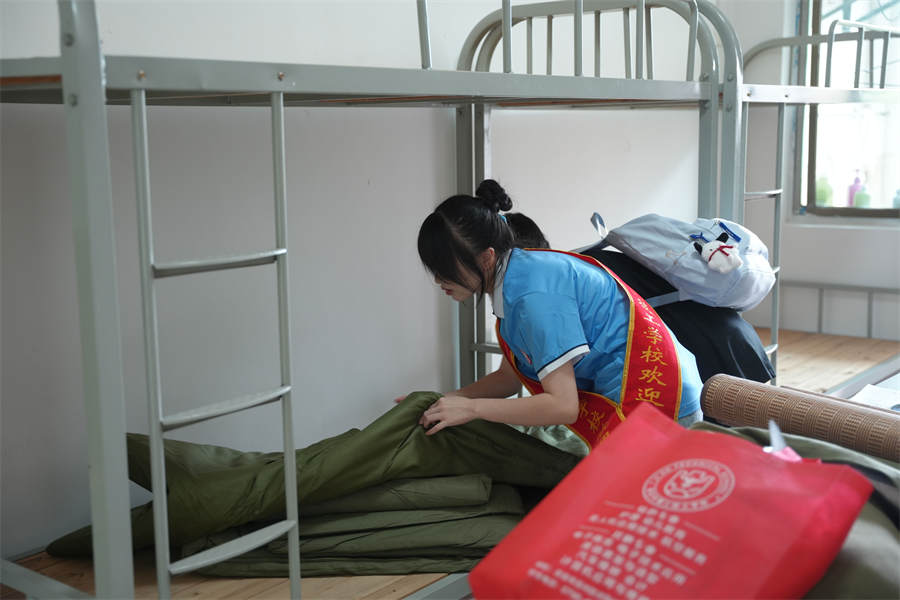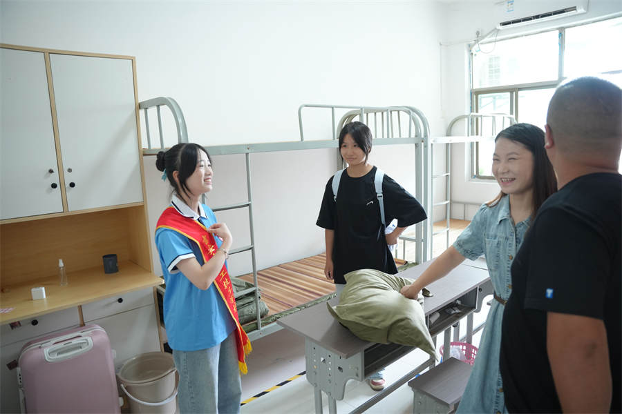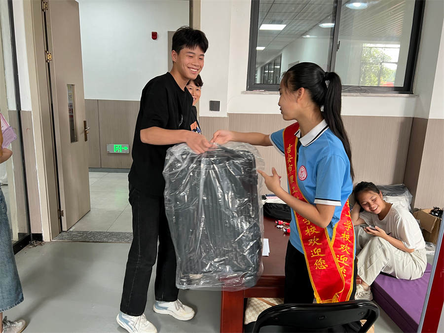 校園里,學(xué)生、老師、志愿者忙碌在各個環(huán)節(jié),協(xié)助新同學(xué)搬運行李、辦理手續(xù)等,幫助新生迅速熟悉學(xué)校,志愿者熱情帶領(lǐng)學(xué)生從進校門到安排好寢室,并幫忙整理床鋪打掃衛(wèi)生,服務(wù)體貼入微。
