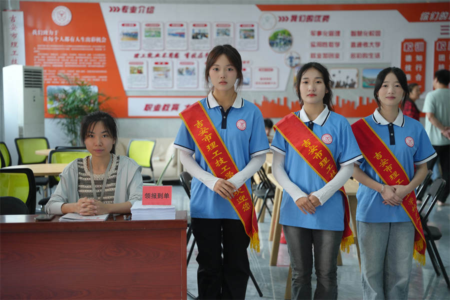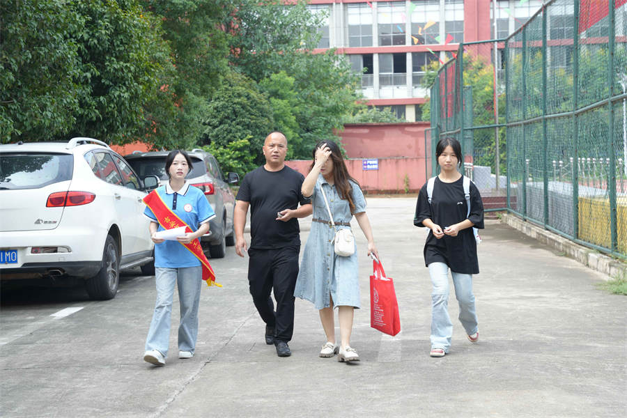 進入校園后,引導(dǎo)學(xué)生家長前往綜合樓。