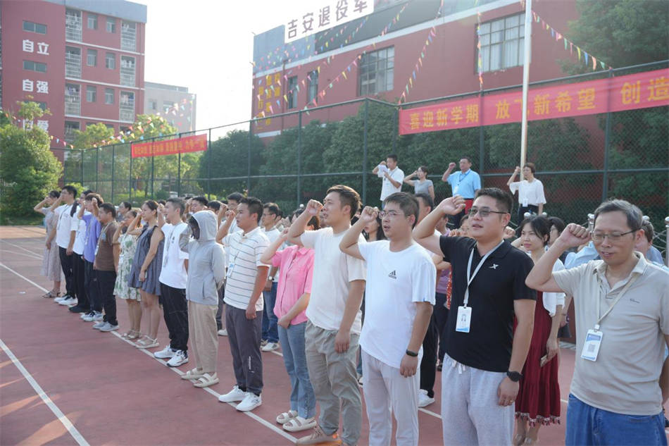 隨后,全體教師與學(xué)生們分別進行了莊嚴地宣誓。教師們的誓言如同山澗清泉般堅定有力,透露出對教育事業(yè)的無限熱愛與對學(xué)生的深情厚誼;學(xué)生們的誓言則如同林間鳥鳴般清脆悅耳,透露出對未來的無限憧憬與對成長的渴望。他們的誓言在校園中回蕩,成為新學(xué)期最響亮的號角,聲聲入耳,激勵著每一個人勇往直前、追求卓越。