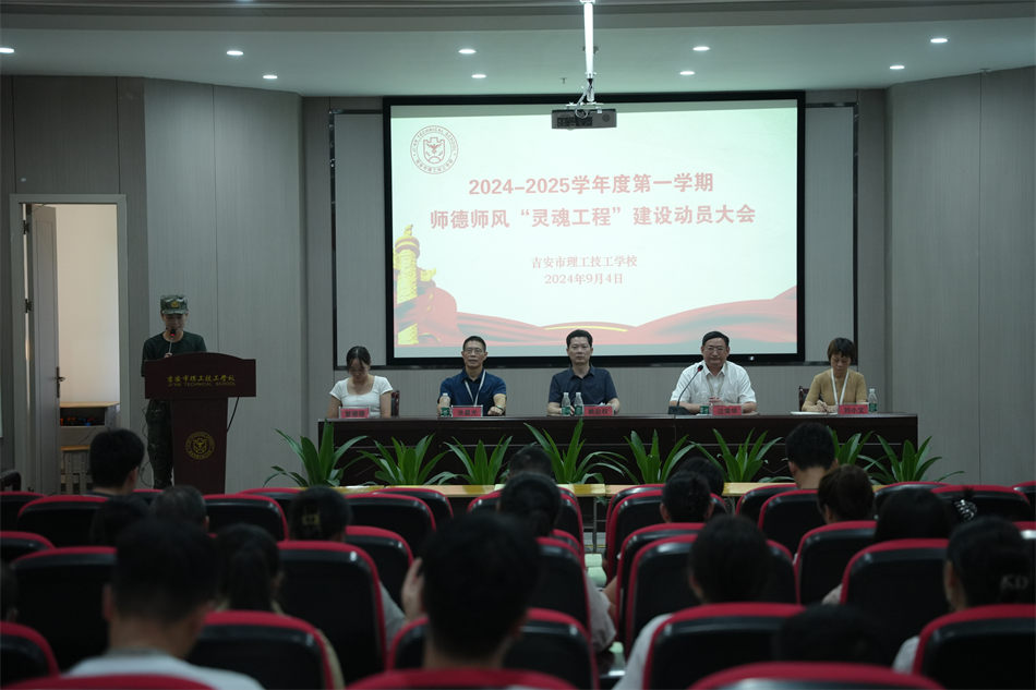 時維九月,序?qū)偃?。為了進一步提高廣大教師的職業(yè)道德水平,為學生的健康成長提供更好的教育環(huán)境,加快推動學校教育事業(yè)健康發(fā)展,努力辦好人民滿意的教育,2024年9月4日,吉安市理工技工學校隆重地舉行了一場師德師風“靈魂工程”建設(shè)動員大會。會議由執(zhí)行校長汪榮華主持。